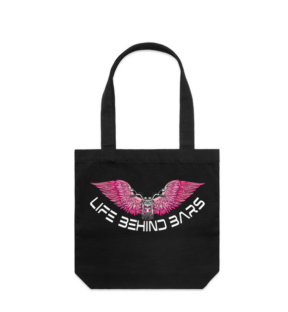 This stunning design includes a motorbike in front of open wings and the words Life Behind Bars across the bottom. Design is available on a variety of products, including: singlets / tanks, tees (v-neck/scoop neck - round neck), long sleeved tees / sweatshirts / hoodies, tote bags and stickers/decals.
