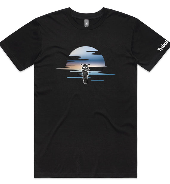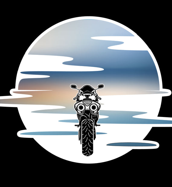 This design is of motorbike riding into a beautiful sunset. Design is available on a variety of products, including: singlets / tanks, tees (v-neck/scoop neck - round neck), long sleeved tees / sweatshirts / hoodies, tote bags and stickers/decals.