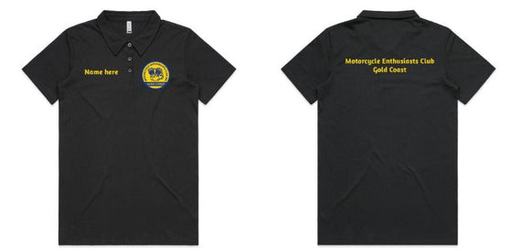Tops include a pocket logo, Motorcycle Enthusiasts Club Gold Coast words on the back and the option to customise by adding a name.