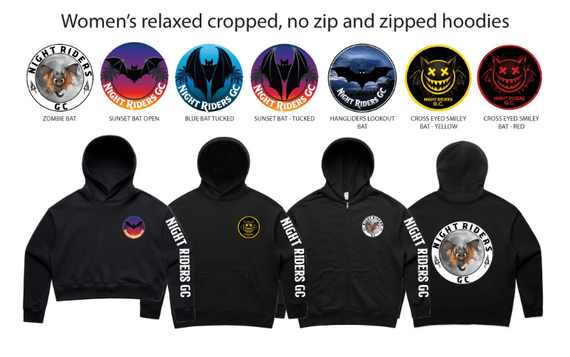 Ladies have the option of selecting from a series of design types on a variety of hoodies. Includes a pocket logo on the front and large back design of the colour chosen.