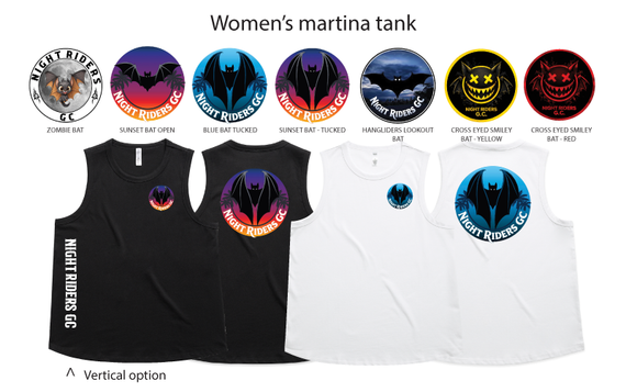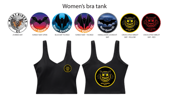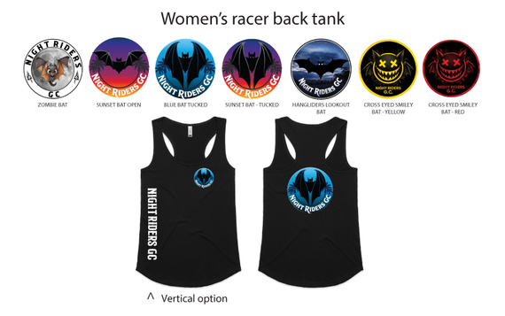 Also includes the option to add Night Riders GC vertically down the right side (bra tank excepted).