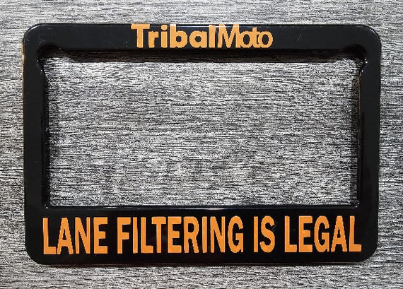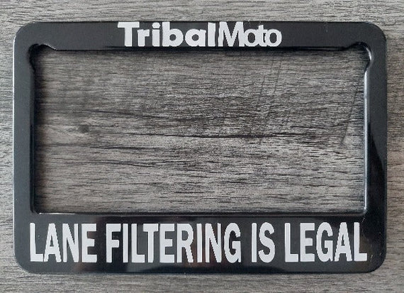 Give them something important to read, by adding this 'Lane filtering is legal' plate frame to your motorcycle.