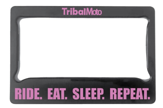 'Ride Eat Sleep Repeatr' motorcycle number plate frame will have the TribalMoto logo at the top.