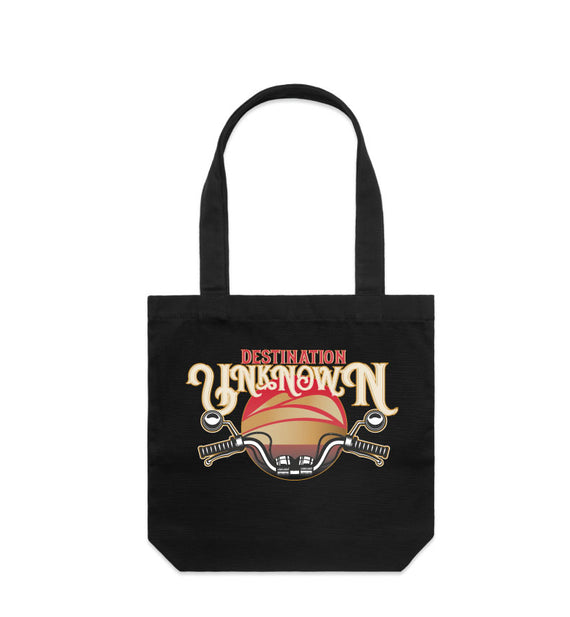 Destination unknown design on a tote bag made of durable thick cotton and has longer handles and heaps of space. Perfect for... well anything!