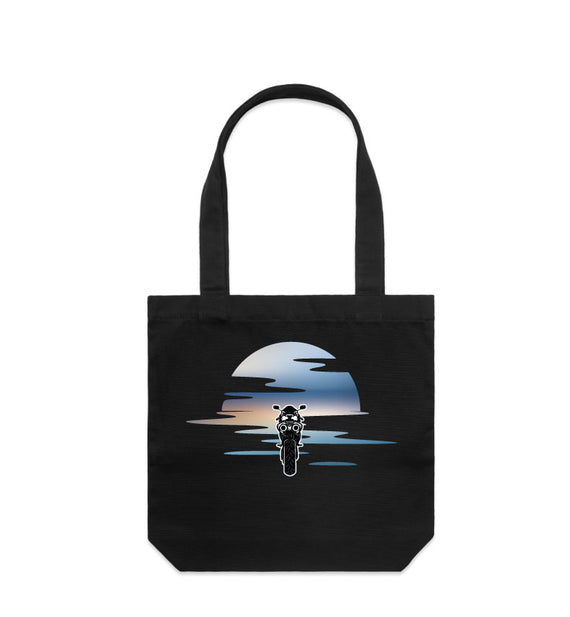 Beautiful design of a sunset and motorbike. Constructed from sturdy, thick cotton with extended straps and a spacious main compartment, this tote is perfect for, well, everything! With reinforced shoulder straps and a heavy weight of 320 GSM, it's also made from 100% cotton canvas. Available in two sizes.