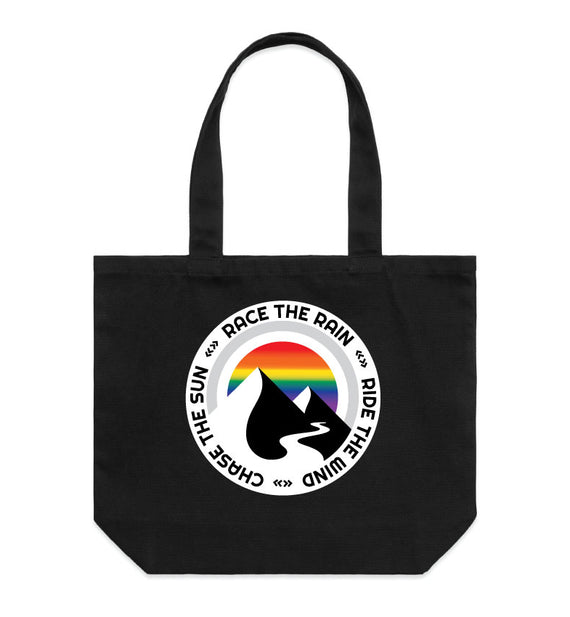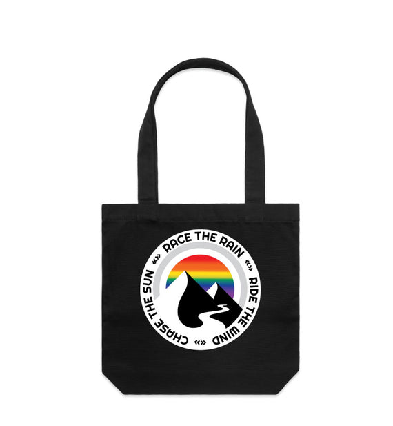 Race the rainbow designed tote. Constructed from sturdy, thick cotton with extended straps and a spacious main compartment, this tote is perfect for, well, everything! With reinforced shoulder straps and a heavy weight of 320 GSM, it's also made from 100% cotton canvas. Available in two sizes.