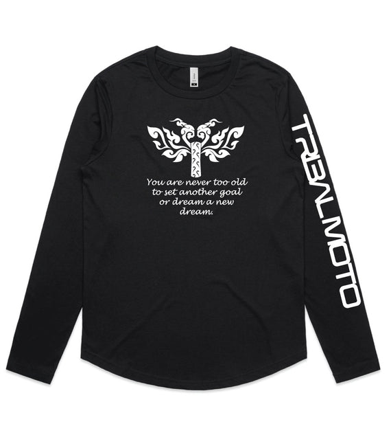 This tribal design reminds us that we are never too old to dream a new dream. Available in a variety of colours. Available in a variety of styles including string singlets, racerback tanks, scoop necks, v-neck tees, sweatshirts and hoodies. Don't forget to grab a matching tote bag and sticker too!