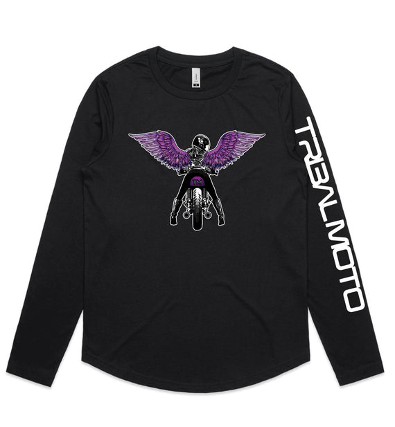 This design is of a sexy lady on a motorbike, looking back cheekily over her purple wings. It really pops and looks great on a tee, hoodie, note pad or bumper sticker. Available in a variety of styles including string singlets, racerback tanks, scoop necks, v-neck tees, sweatshirts and hoodies. Don't forget to grab a matching tote bag and sticker too!