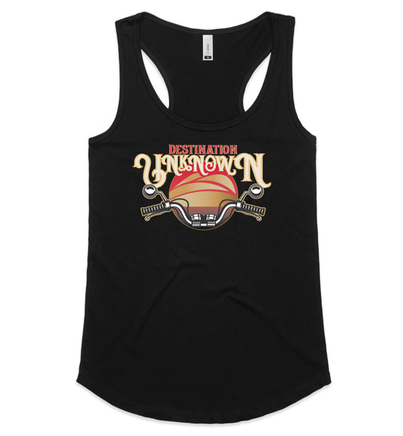 Destination unknown design - available in string singlets, racerback tanks, scoop necks, v-necks, sweaters and cozy hoodies. Don't forget to grab a matching tote bag and sticker too!