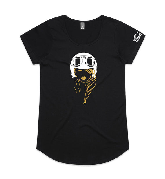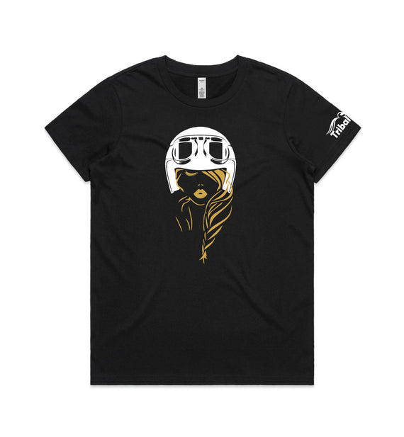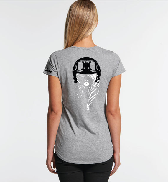 Timeless, elegant and very demure, this lady rider wearing a motorbike helmet looks great on anything. Available in a variety of styles including string singlets, racerback tanks, scoop necks, v-necks, sweatshirts and cozy hoodies. Don't forget to grab a matching tote bag and sticker too!
