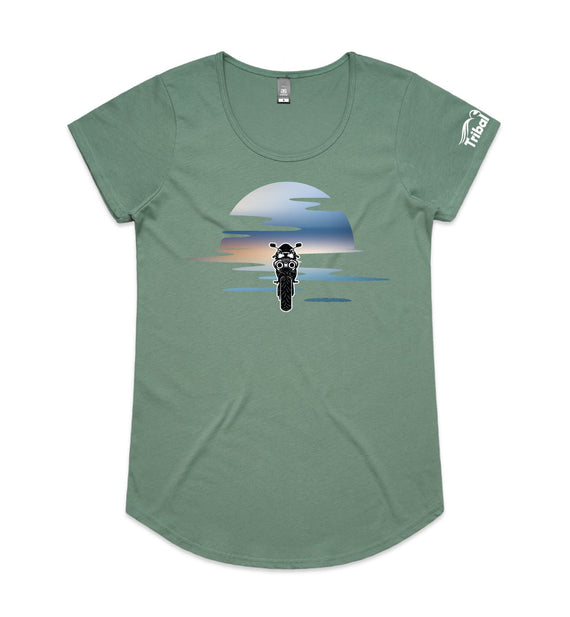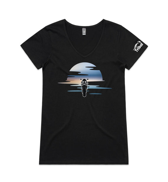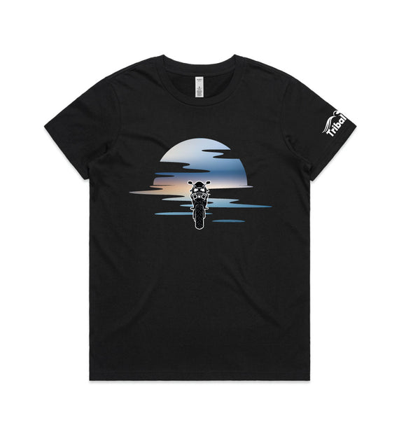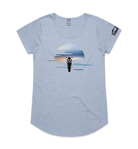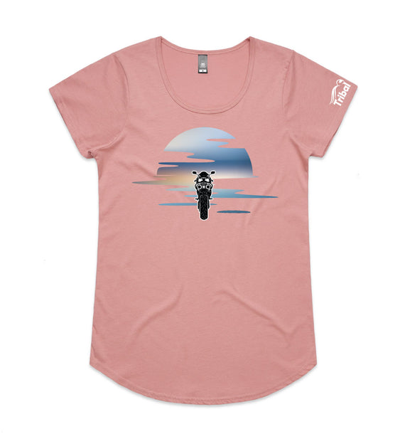 This design is of a motorbike in front of a beautiful sunset. It really pops and looks great on a tee, hoodie, note pad or bumper sticker. Available in a variety of styles including string singlets, racerback tanks, scoop necks, v-necks, sweatshirts and cozy hoodies. Don't forget to grab a matching tote bag and sticker too!