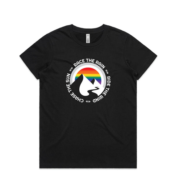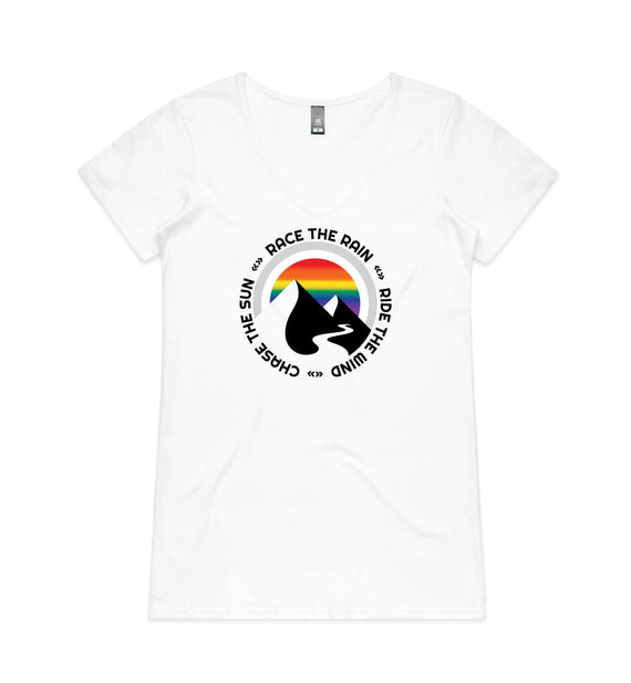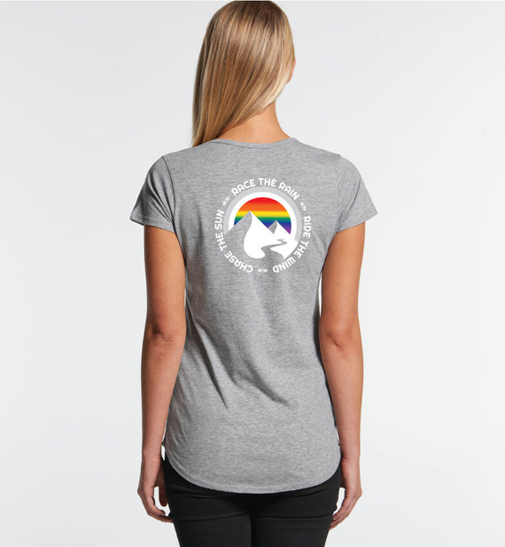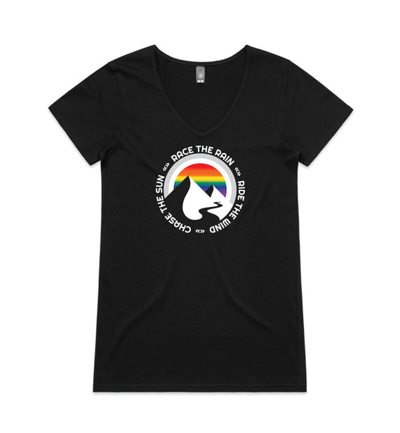 Race the rainbow. Available in a variety of styles including string singlets, racerback tanks, scoop necks, v-necks, sweatshirts and cozy hoodies. Don't forget to grab a matching tote bag and sticker too!