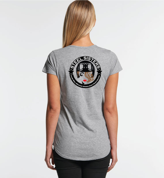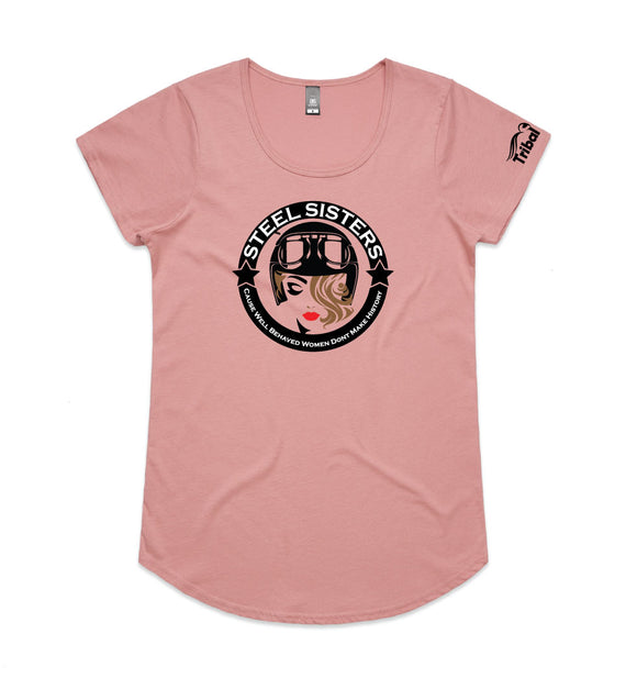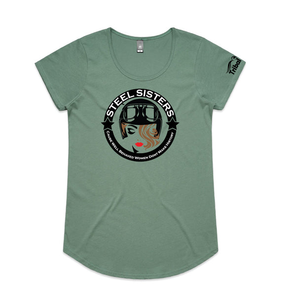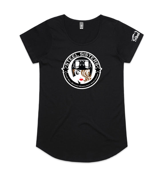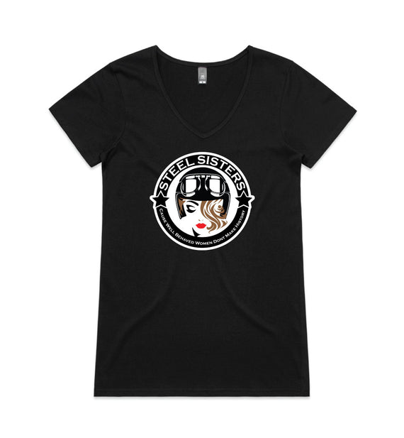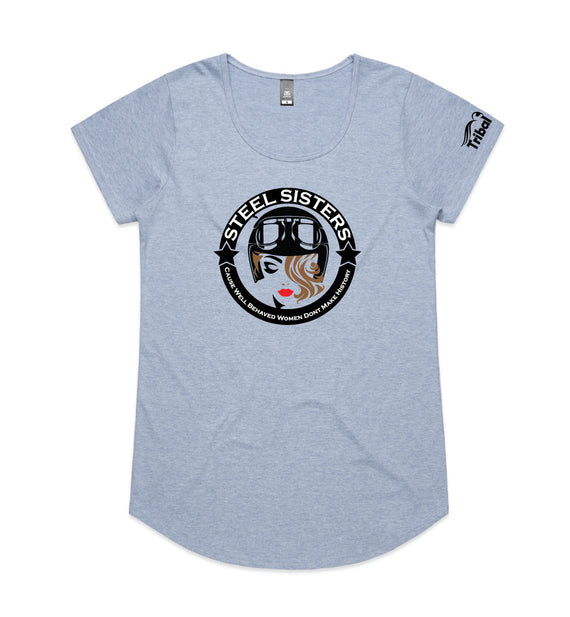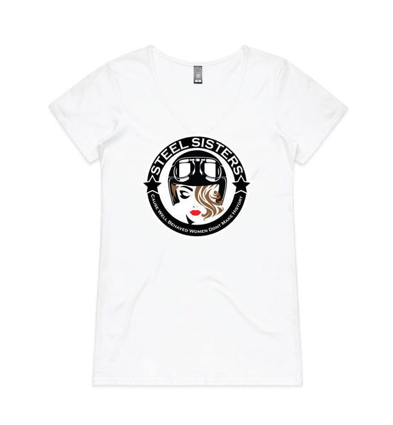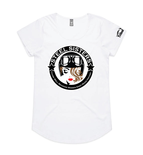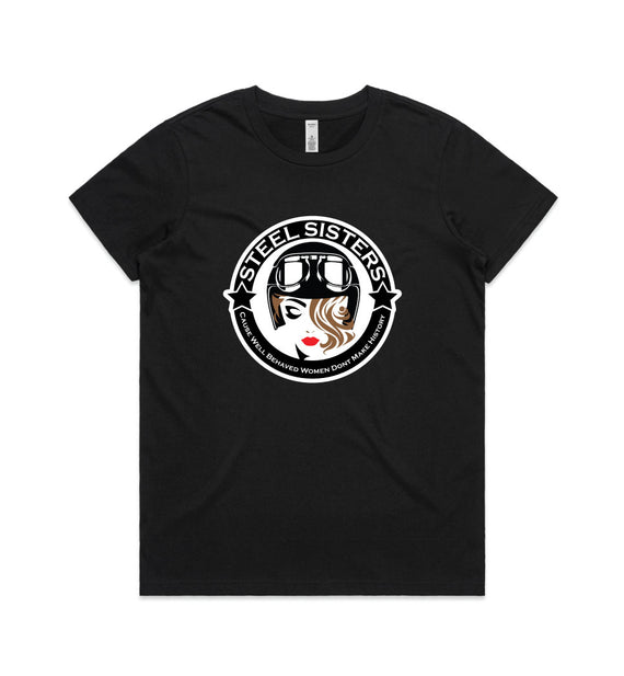 This design includes a sexy rider in helmet inside a circle with the words, Steel sisters... because well behaved women never make history. Available in a variety of styles including string singlets, racerback tanks, scoop necks, v-necks, sweatshirts and cozy hoodies. Don't forget to grab a matching tote bag and sticker too!