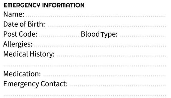 In the unfortunate event of an accident, this little card becomes your voice when you can't speak. Emergency services can swiftly access vital information, ensuring prompt and precise treatment. It's not just about safety; it's about style – because being prepared never looked this good.