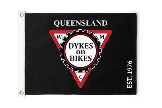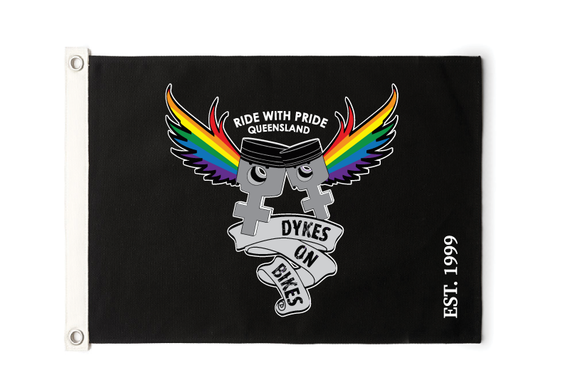 This Dykes on Bikes designs are applied on both sides of the flag.