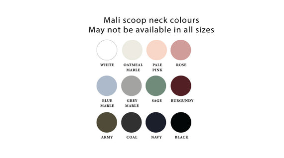 Scoop neck available in a variety of colours, however may be limited sizes.