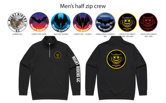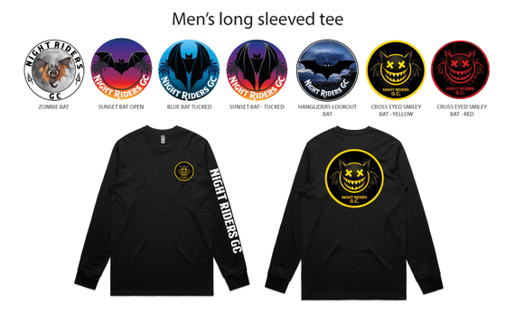 Guys have the option of selecting from a series of design types on a variety of long sleeved tees, crew neck and hoodies. Includes a pocket logo on the front and large back design of the design chosen.