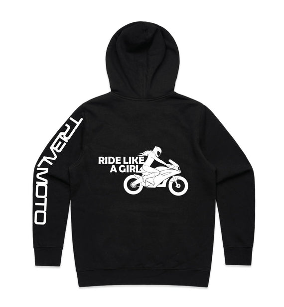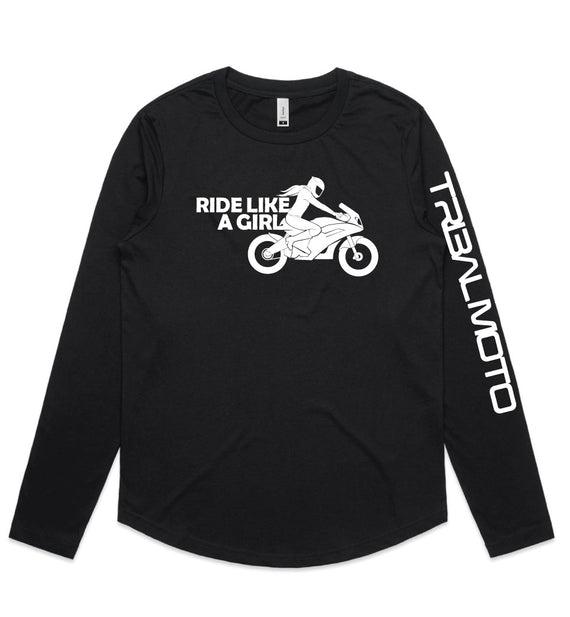 Ride like a girl is a sassy play on words and includes a lady rider on her motorbike with the words Ride like a girl behind her. Available in a variety of styles including string singlets, racerback tanks, scoop necks, v-neck tees, sweatshirts and hoodies. Don't forget to grab a matching tote bag and sticker too!