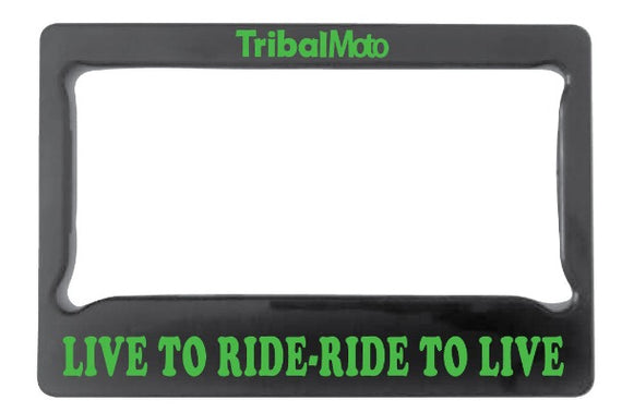 'Ride to live' motorcycle number plate frame will have the TribalMoto logo at the top.