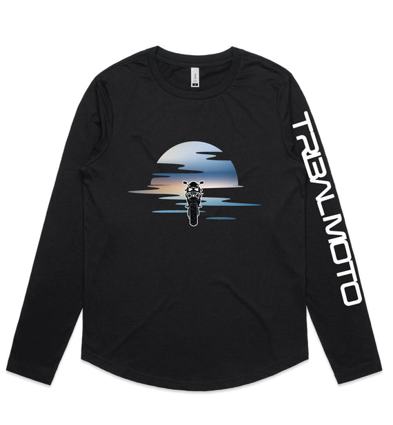 This design is of a motorbike in front of a beautiful sunset. It really pops and looks great on a tee, hoodie, note pad or bumper sticker. Available in a variety of styles including string singlets, racerback tanks, scoop necks, v-neck tees, sweatshirts and hoodies. Don't forget to grab a matching tote bag and sticker too!