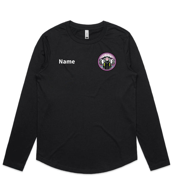2XL and 3XL long sleeved tees include cuff and straight edge at bottom.